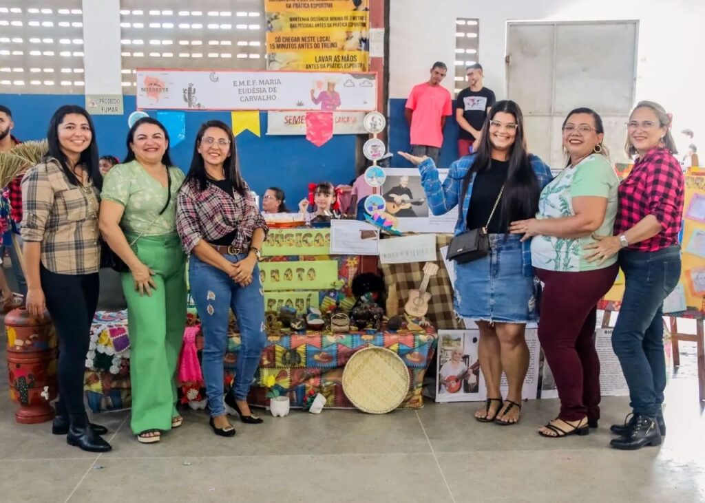 Arraiá do Municipá 2023 – A Secretaria de Educação, Esporte e Cultura (SMEC), realizou a culminância de algumas atividades artísticas e culturais desenvolvidas no Projeto “O que é que o Nordeste tem? Multiculturalismo e Diversidade Cultural”, uma viagem pelos Estados do Nordeste e suas culturas. O evento se caracterizou como um arraiá, com muita animação e diversão entre estudantes, professores e as comunidades escolares. Durante o Arraiá tiveram apresentações das escolas do campo e da cidade, exposições artísticas, comidas típicas, quadrilhas juninas e forró pé de serra, além de sorteios de balaios juninos para os estudantes matriculados na Rede Municipal de Ensino. O Prefeito Tarcísio Lopes parabenizou as escolas pelo belíssimo evento e prestigiou todo arraiá, juntamente com a secretária de educação, Elizabete Tomaz e os coordenadores da SMEC. Um destaque foi dado às quadrilhas que se apresentaram, a quadrilha do ENIAI, como convidados, e a quadrilha Moça Menina. Também foi um espetáculo a parte, a quadrilha Nação Jovem, da Escola João Alves. O projeto, continua em desenvolvimento até o término do segundo bimestre, possibilitando o que a Coordenação tem destacado como sendo as competências para ampliação do repertório cultural e artístico dos estudantes, no tocante à sua identidade e diferença cultural nordestina.