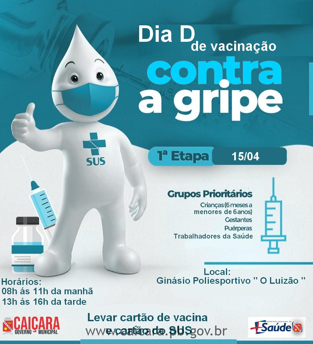 No dia 15/04, teremos o Dia D de vacinação contra a gripe.