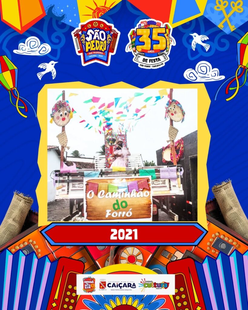 A pandemia impediu a festa de 2021, era o primeiro ano do prefeito Tarcisinho e de “Paulinho de Moça” como coordenador de cultura. Um trio elétrico com sanfoneiros circulou no São João e no São Pedro.